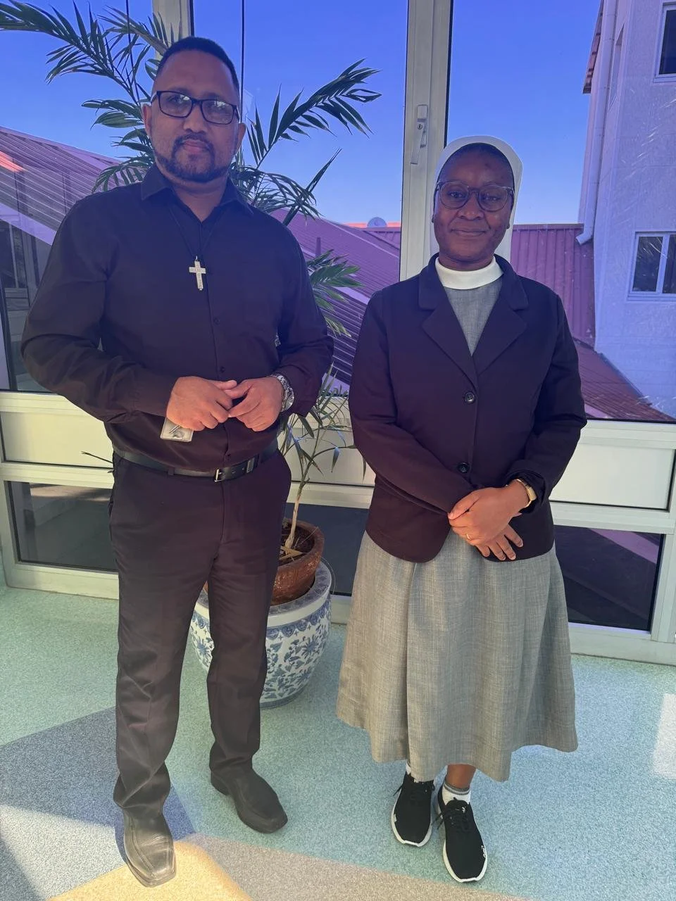 Fr. Huelerd Ramon, OSFS, Provincial of the Southern African Province, with a religious sister who works with Oblates at the Catholic hospital.